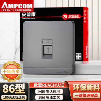 安普康(AMPCOM)网络面板 单口全面屏超六七八CAT678类网线信息模块插座 86型RJ45电脑RJ11电话暗装网口AM8601RD
