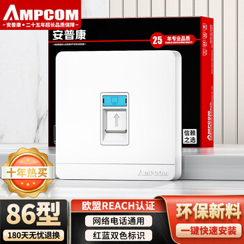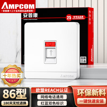 安普康(AMPCOM)网络面板 单口全面屏超六七八CAT678类网线信息模块插座 86型RJ45电脑RJ11电话暗装网口AM8601RD