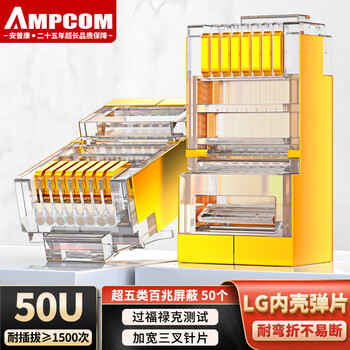 安普康AMPCOM网络模块超五类工程级免打镀金CAT5e家装办公电脑路由器水晶头网口网线连接头AMCAT5E008(YE)
