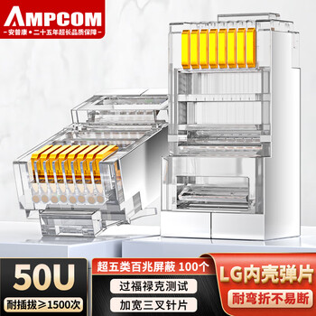安普康(AMPCOM)超五类屏蔽FTP网线水晶头 RJ45电脑50U纯铜镀金8P8C超5类CAT5E百兆工程网络连接头50个 AC5EB105TP